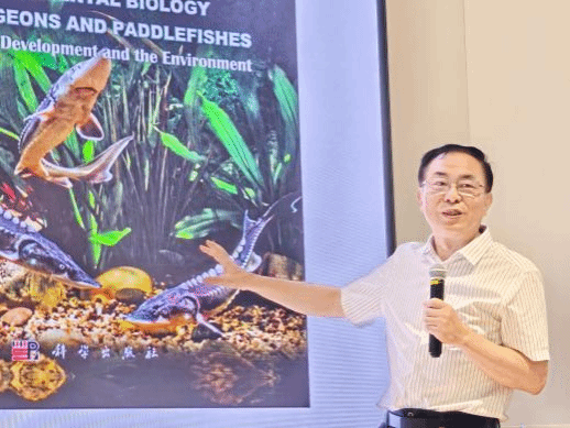 穿越亿万年,探寻鲟鱼的生命史诗。在讲座现场,庄平研究员就像一位“时空导游”,他娓娓道来,引领师生进行了一场跨越亿万年的生命之旅,探秘了鲟鱼在地球生命演化史上的辉煌“前世”,审视了全球鲟鱼类面临威胁的“今生”,聚焦于中国鲟鱼保护的故事,展望了人-水关系重塑的未来。面对台下朝气蓬勃的青年学子,庄平研究员结合自己四十余年潜心科研的亲身经历,分享了科学探索的艰辛与乐趣,以及守护地球生命的重大意义。“科研之路固然充满挑战,崎岖难行,”庄平研究员动情地说,“但唯有秉持持之以恒的毅力,勇于攻坚克难,我们才能真正守住这一江碧水,护住这一脉多姿多彩的生灵。”他向年轻一代发出诚挚的邀请,期待更多富有理想与热情的新鲜血液,能够投身于水生生物保护这项伟大而艰巨的事业,为这条漫漫长路注入源源不断的青春活力。