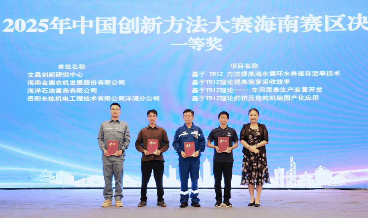 近日,2025年中国创新方法大赛海南赛区决赛在海口举行。我所实验基地管理中心团队联合文昌创新研究中心参赛的两个项目《基于TRIZ方法提高海水循环水养殖存活率技术》《基于TRIZ方法提高海马养殖存活率技术》分别荣获海南赛区一等奖和三等奖,其中一等奖项目更是获得参加全国总决赛资格。文昌创新研究中心也因在赛事筹备、技术交流组织等方面的突出贡献,荣获“特别贡献奖”。